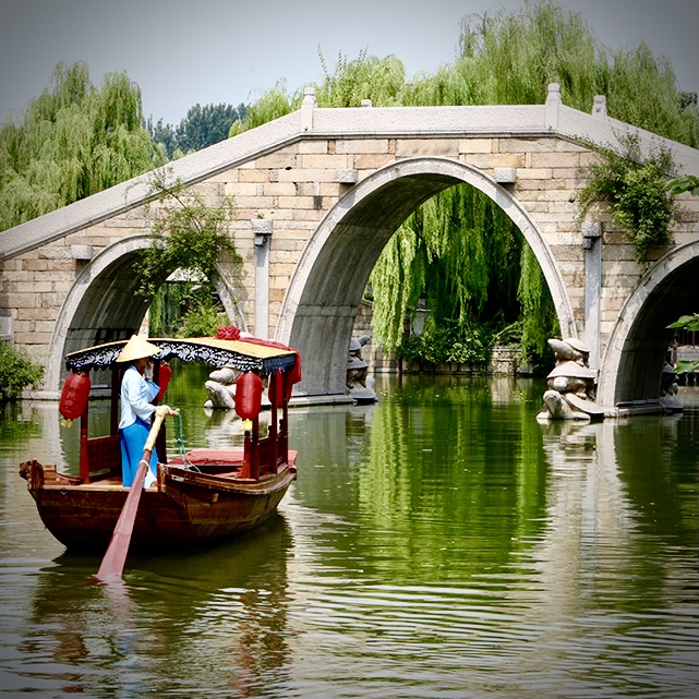 I love the woman and her boat... the bridge is intriguing but I think the bridge and sky and the water need some pop. A tighter crop would help get to the subject and still tell the story. |