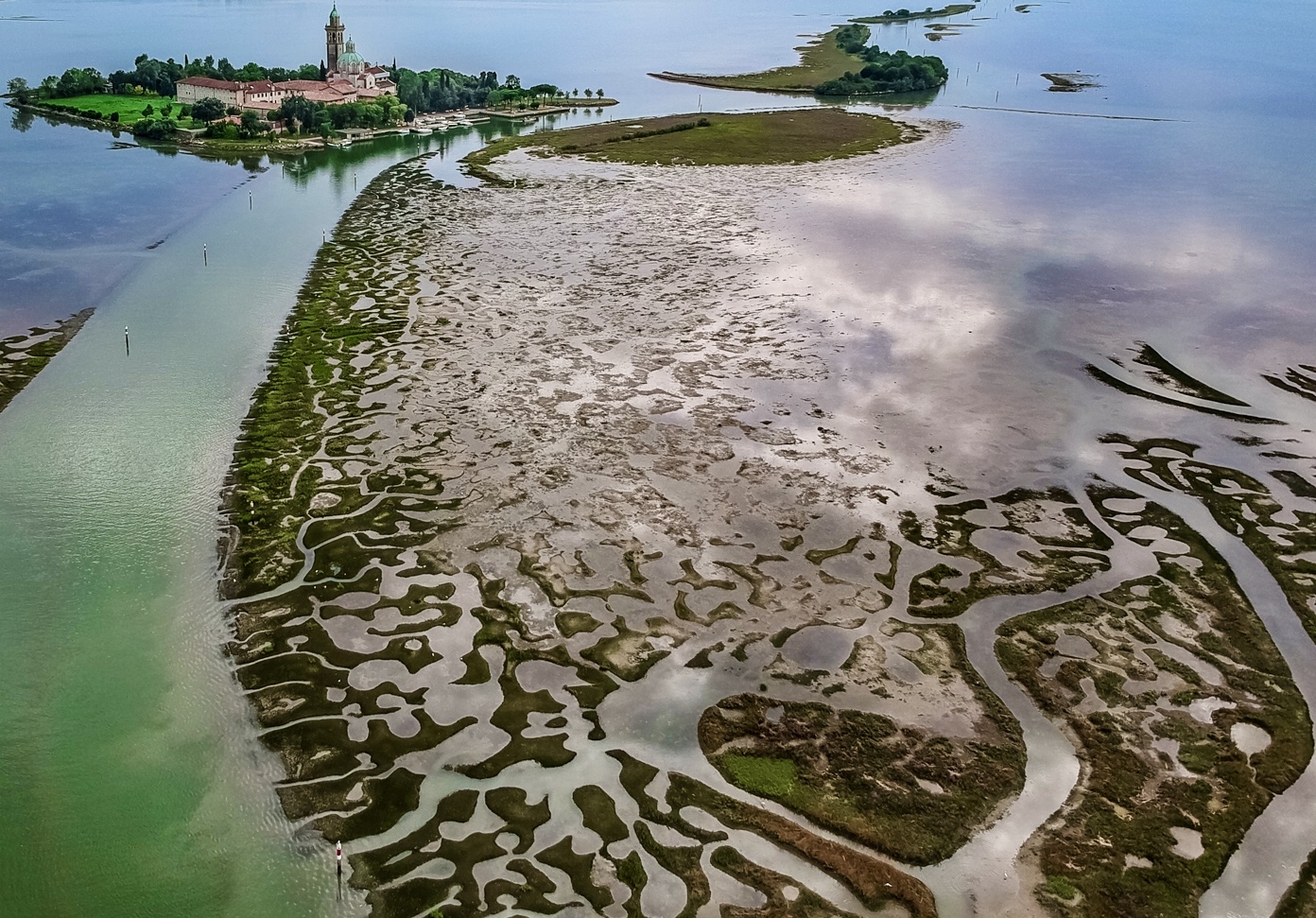 I really like the building and tower and the leading lines up to it. But I also like the abstract water feature… definitely a lot going on here. I did a little crop, and I would like more water above the building, but something like this accentuates the graphic design, while leading your eye to the building. Just my take on your cool image. |