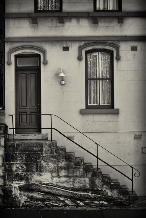 The 1918 photos were from a completely different part of Sydney, showing some of our colonial architecture. Some images show buildings in their entirety while others just show just some of the finer details. It was fun to do, but sometimes a challenge as I had to make sure there was nothing in the frame that would give a modern date such as cars, signs, modern fashion etc. I have attached one from the older area just to show you. In PP I have tried to give it the appearance of a photo taken 1918. |