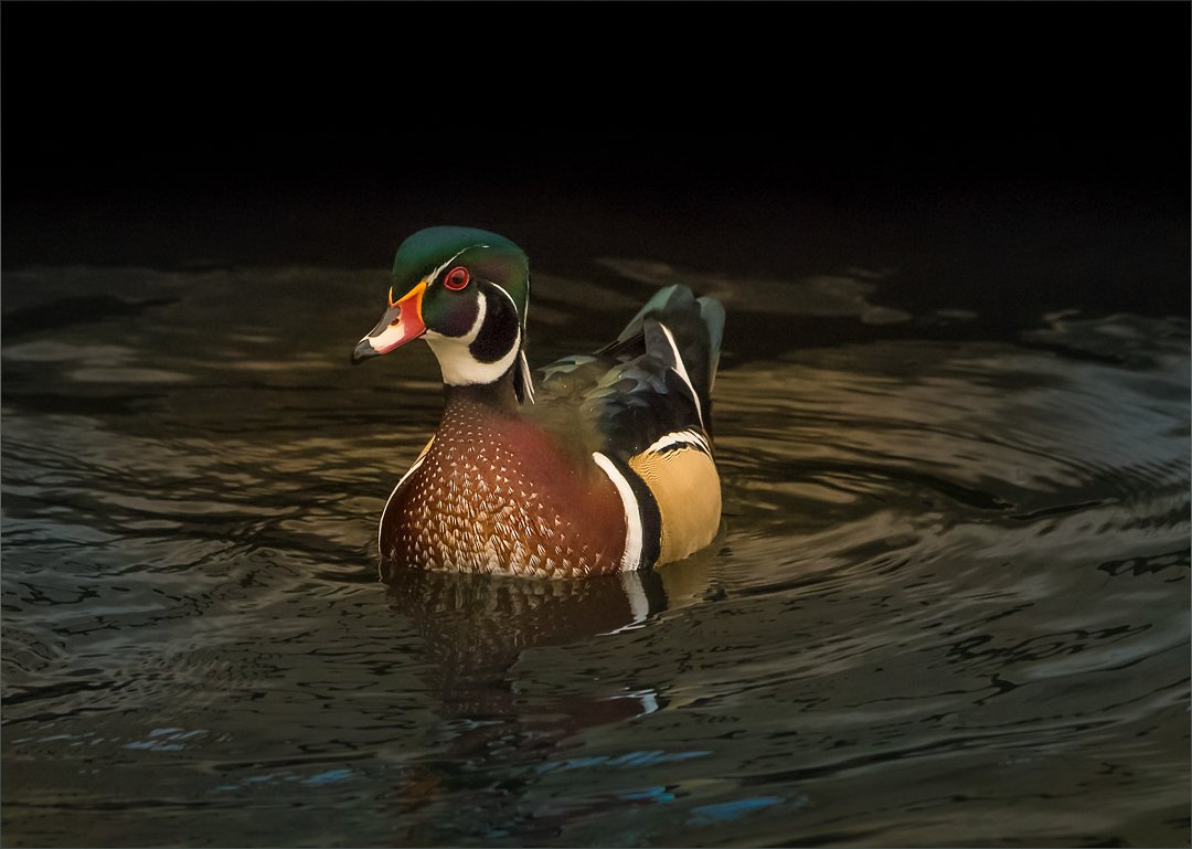 Thank you. My thoughts exactly. This shot was done in Camera with the dark background so I was happy the wood duck swam through that beam of light. Not always does it happen that way. We have very few wood ducks here as well, and I miss seeing them too. I am always happy to find them and be able to get close enough. They are a very skittish species. I think our zoo had them at one time, but not anymore. This is a Canadian wood duck. 😊|