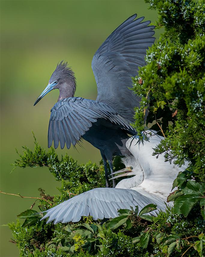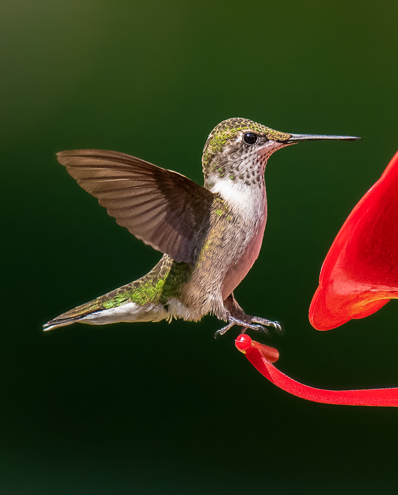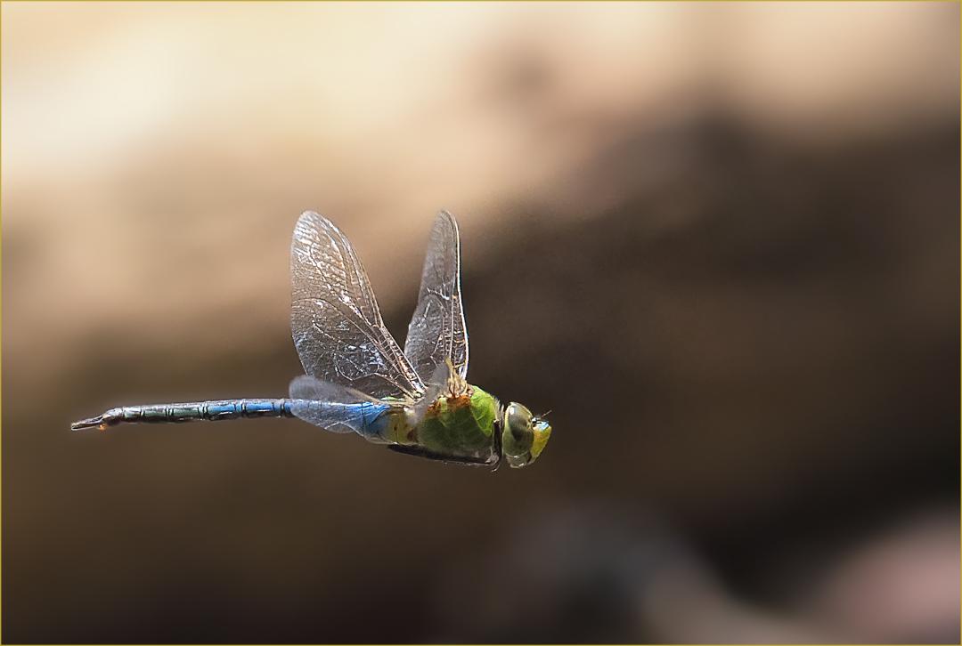 Very nicely captured. Sharp where it needs to be, and action indicated by both the pose and the blurred wings. Good lead room. Lighting is well done also. I do like that the background tone and color work well. |