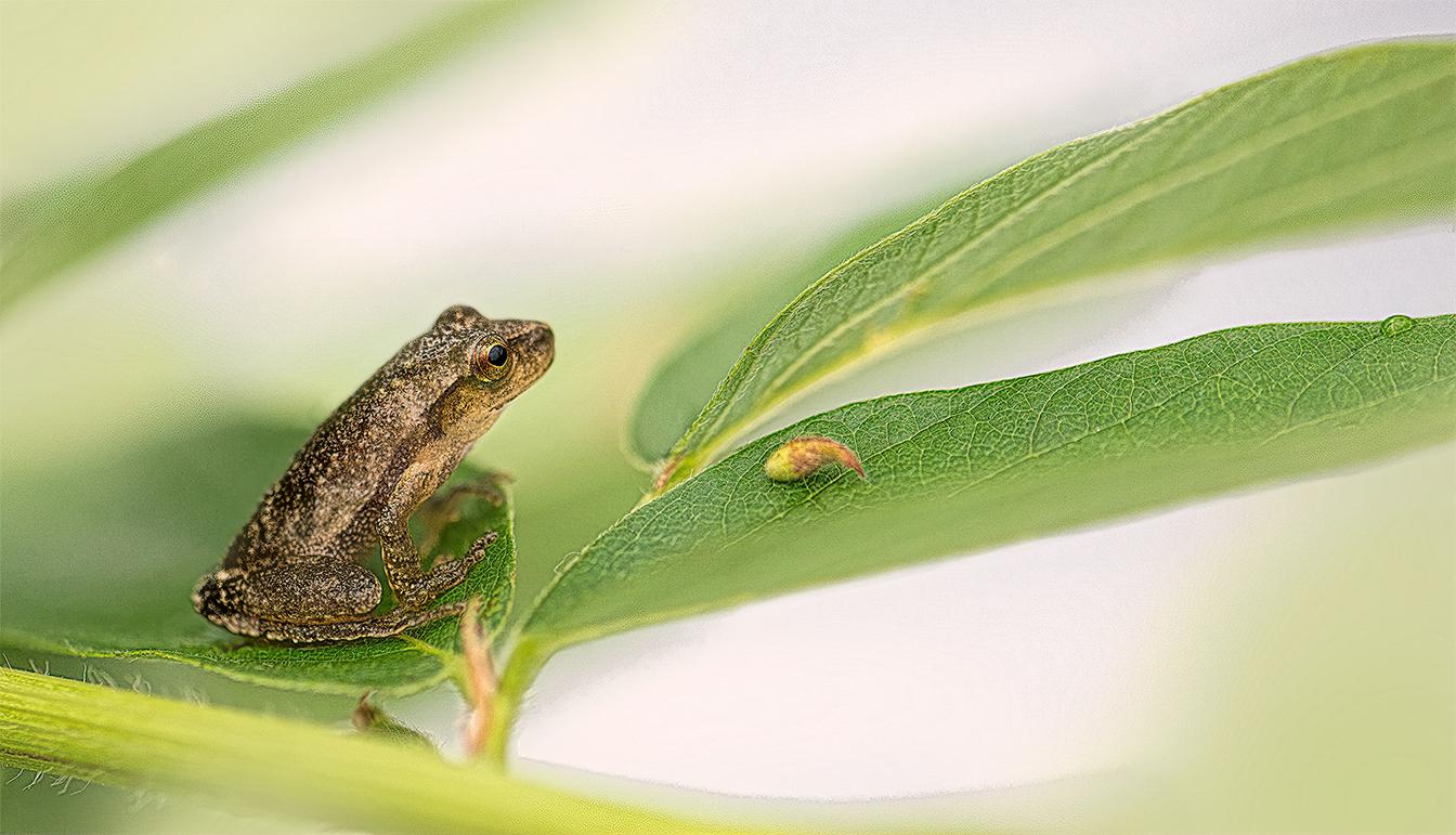 Nature of the beast in a way with macro. My camera can focus stack if on a tripod, but this was handheld because you have to crawl in where the frogs reside. Even a monopod could not be used. I happen to like the art of a macro shot, so I say away from letting my camera stack the images. |