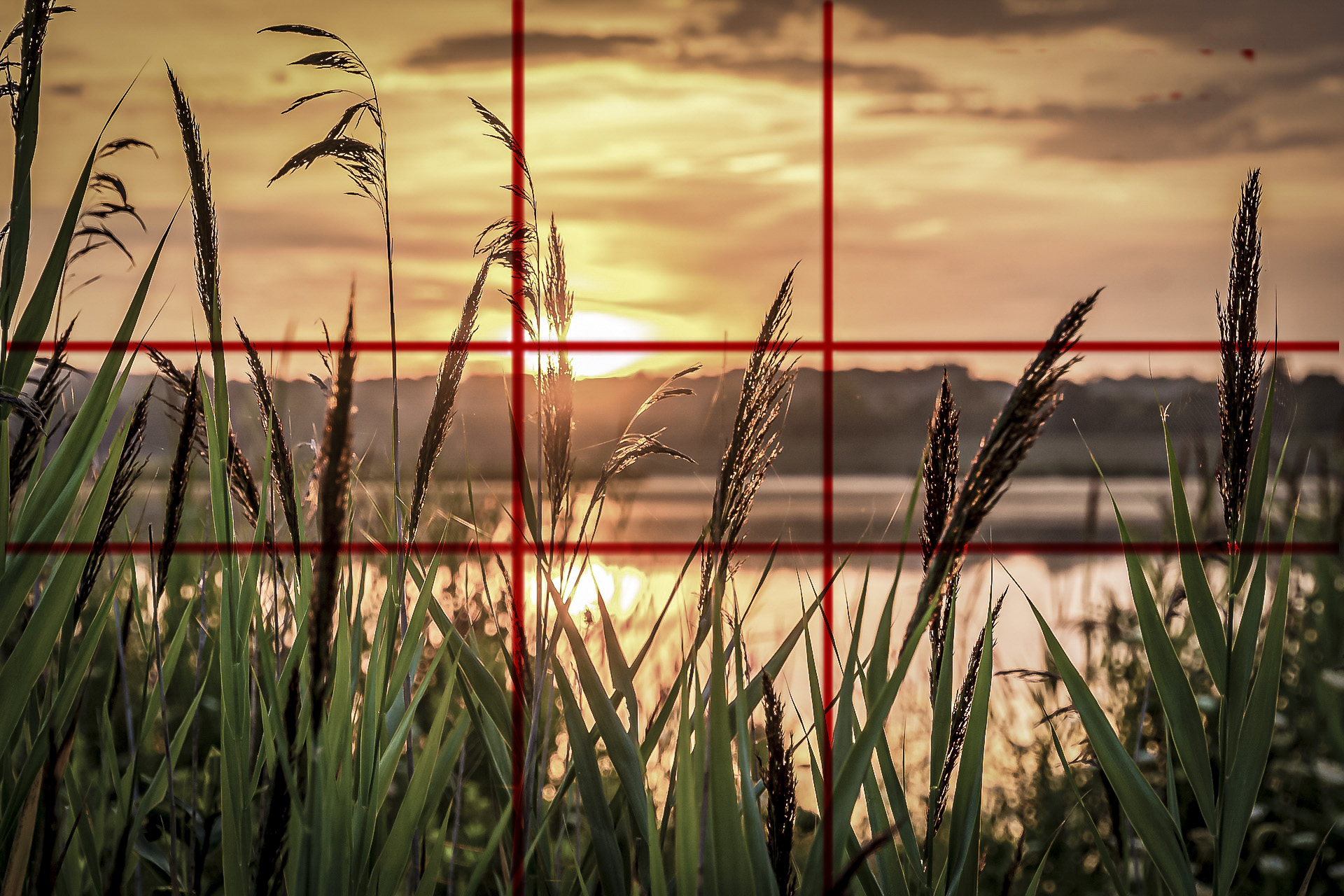 Later I learn that this is "Golden ratio ". Each line divide the image into roughly 1:1.6 . One way to visualize it is the location of 5 o'clock on a clock face . I also like how the vegetation form a diagonal line down and the apex is close to the grid intersection before turning up again.
