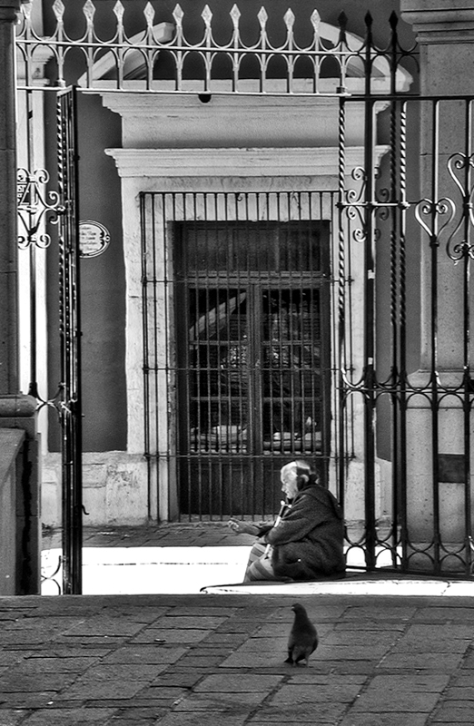You have a very lovely photo. I wonder what this would look like in black and white? You said you cropped it, the only thing I would ask is if there was more to choose from for the left and right sides. In an effort to balance out the sizing of the two columns if there was more on the left would be nice. Or, here is a suggestion of the cropping idea and I also converted it to black and white just for fun. This cropping puts the lady on the bottom right intersection of the rule of thirds.