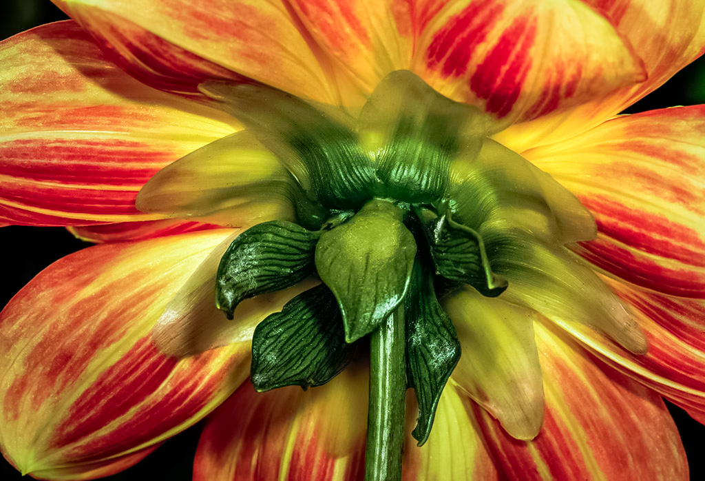 Very impressive flower you have here! Love the colors and the back side perspective! Its amazing when something can look so beautiful from the front and the back. You have an excellent capture and the stem being the subject is perfect. I would only suggest brightness. I have uploaded a pic as example.