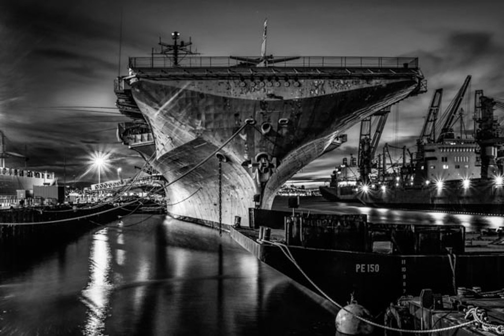 Paul, I have to agree this is an amazing shot! The black and white is, in my humble opinion, the best choice. I like how you captured the ship at an angle to give it depth and dimension. The light starburst on the left helps to draw the eye down the length of the ship moving the viewer through the scene. You captured it well and it is very sharp with nice detail of the PE150.