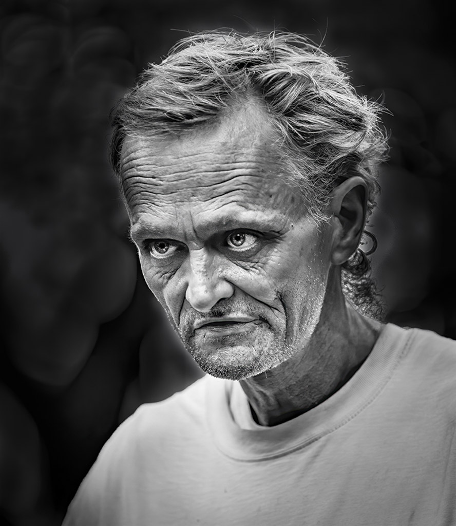 My suggestion to enhance an already great photo would be to work on the bokeh in the background. To me, it is competing with the man's face, especially the spot behind his head.