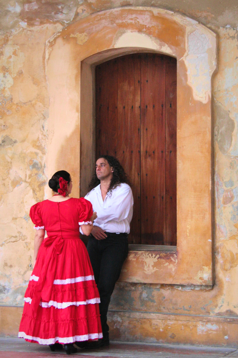 You're right about the red dress; it is an eye magnet for a viewer. It really anchors the image. Both of you ladies like the door frame, and when you said it captured San Juan I knew the whole doorway and frame needed to be included - this is what is so great about PSA's groups and these discussions. I think cropping on all 4 sides brings the couple closer to the viewer's eye and making them more prominent than the inanimate object (door) which is a win-win for Lisa.