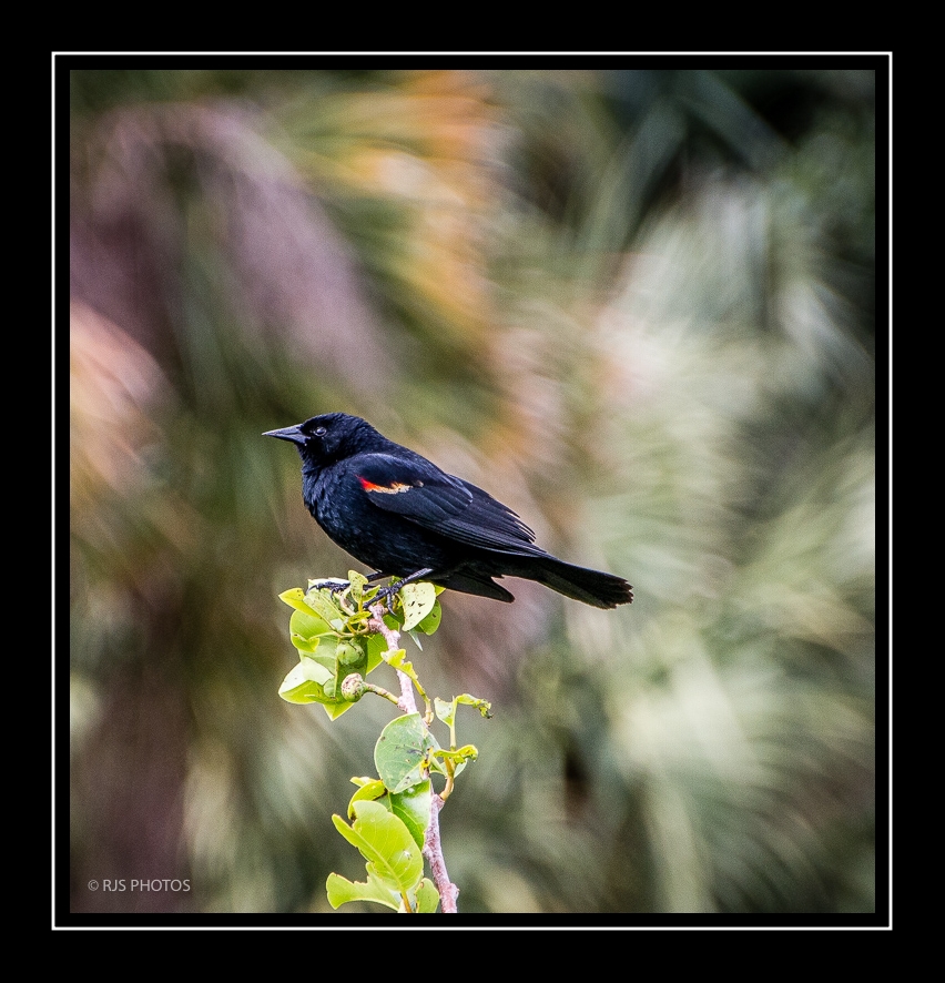 What an awesome photo of this Red-winged black bird! I like your background; what did you do to get the swirling effect? Your adjustment to cut down the highlights on the background has worked perfectly. I think your vignette is also done well; I can feel it but it is not noticeable very nicely done. I also like the crop in which you removed that leaf that stood out.
