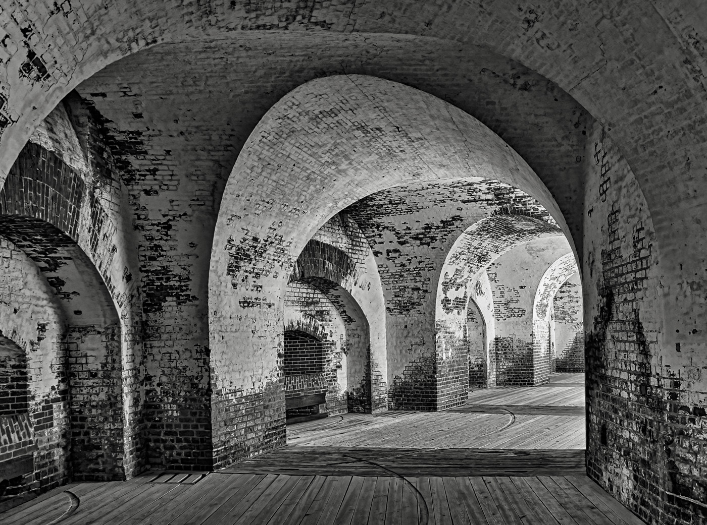 Your settings made a great image. The scene is void of distractions, and there is enough interest in the stone archway to keep a viewer's eye engaged in the image. There are enough details in the brick to beg the question, what was life like here in 1862?