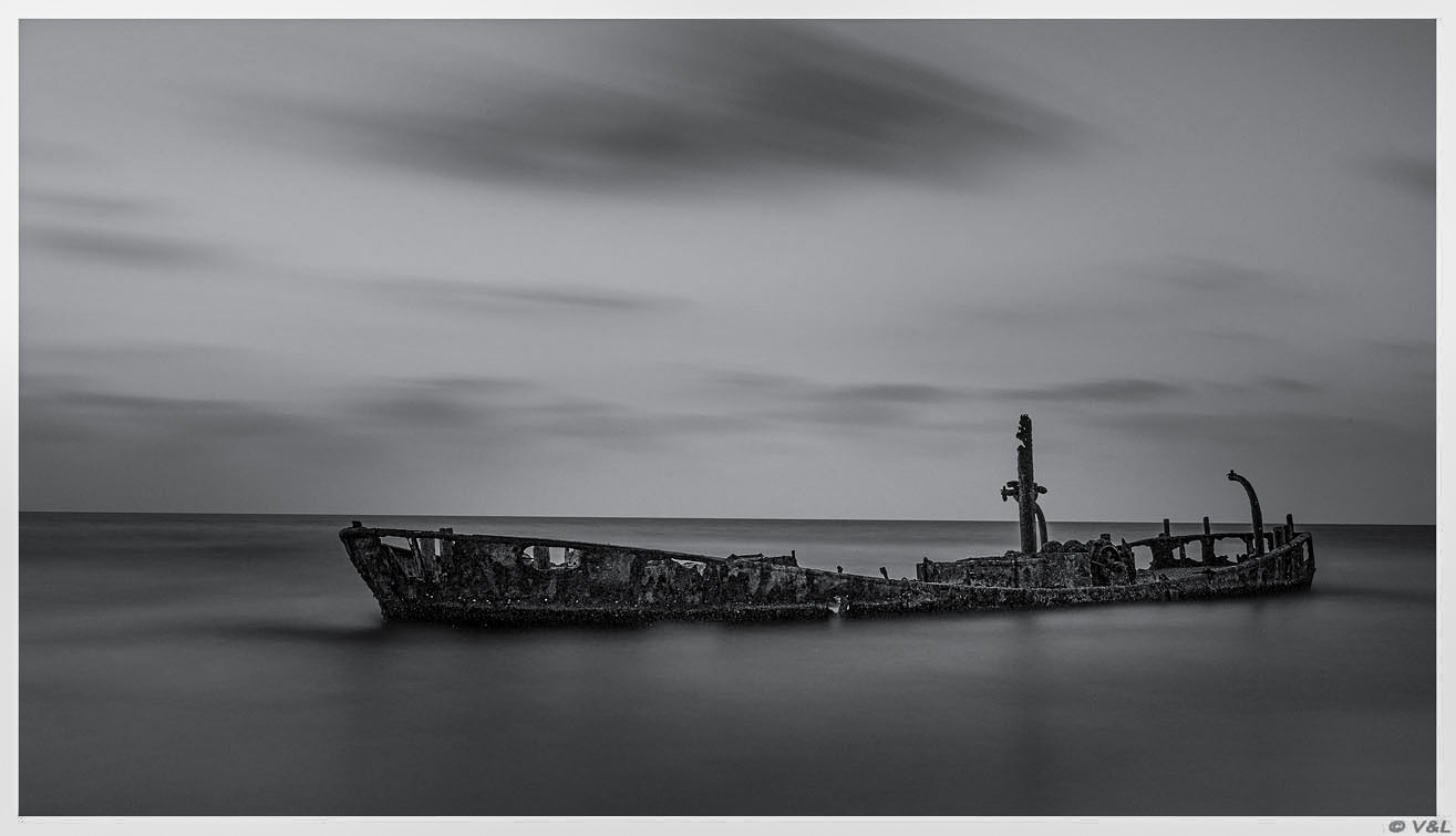 The first thing I noticed in your image was the peaceful and calm waters surrounding this abandoned ship. I couldn't help but wonder what type of voyages and experiences this ship had in its lifetime.
