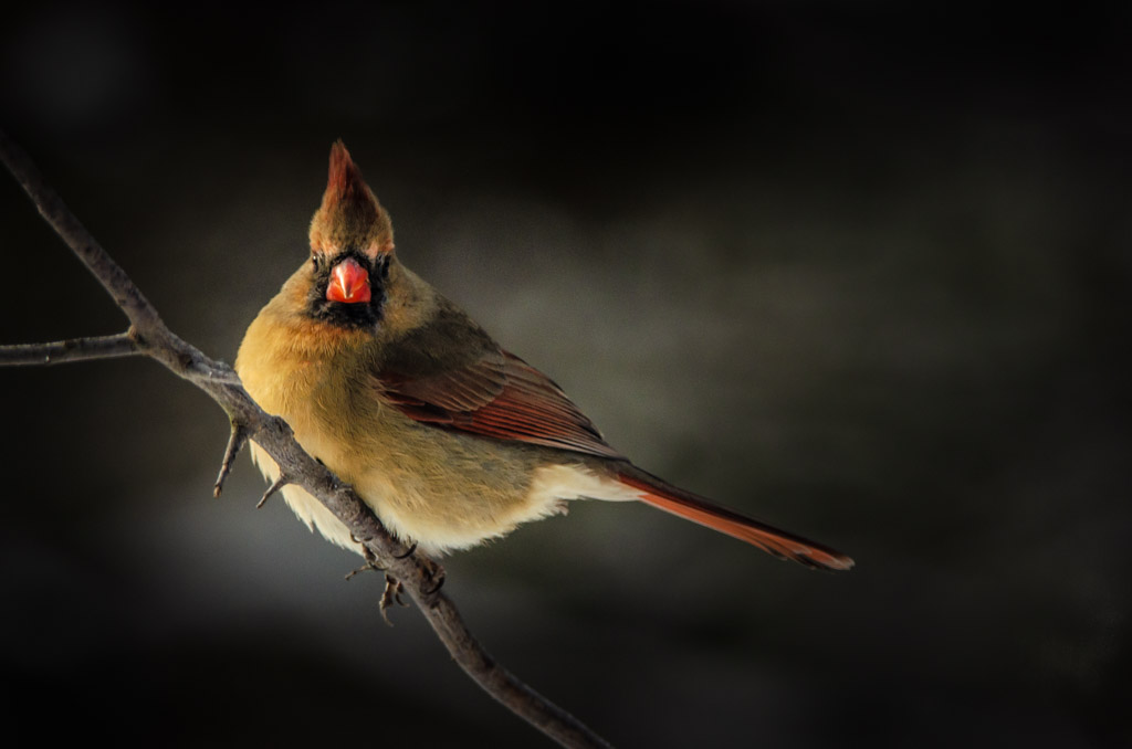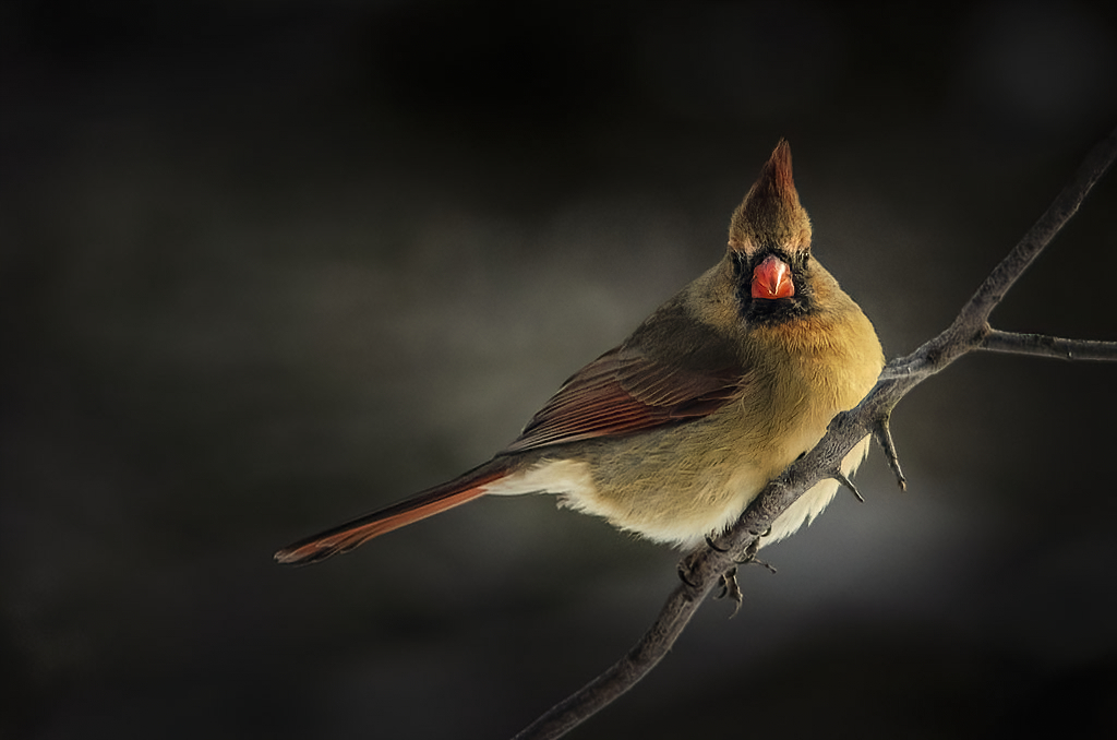 I tend to be a rule-breaker, so that is why I saw more impact with the light and the bird looking straight ahead than if there was a side profile; it is a look that makes you want to look twice; like looking at a bird with attitude. I thought this point of view was unique and would stand out from the average shot.