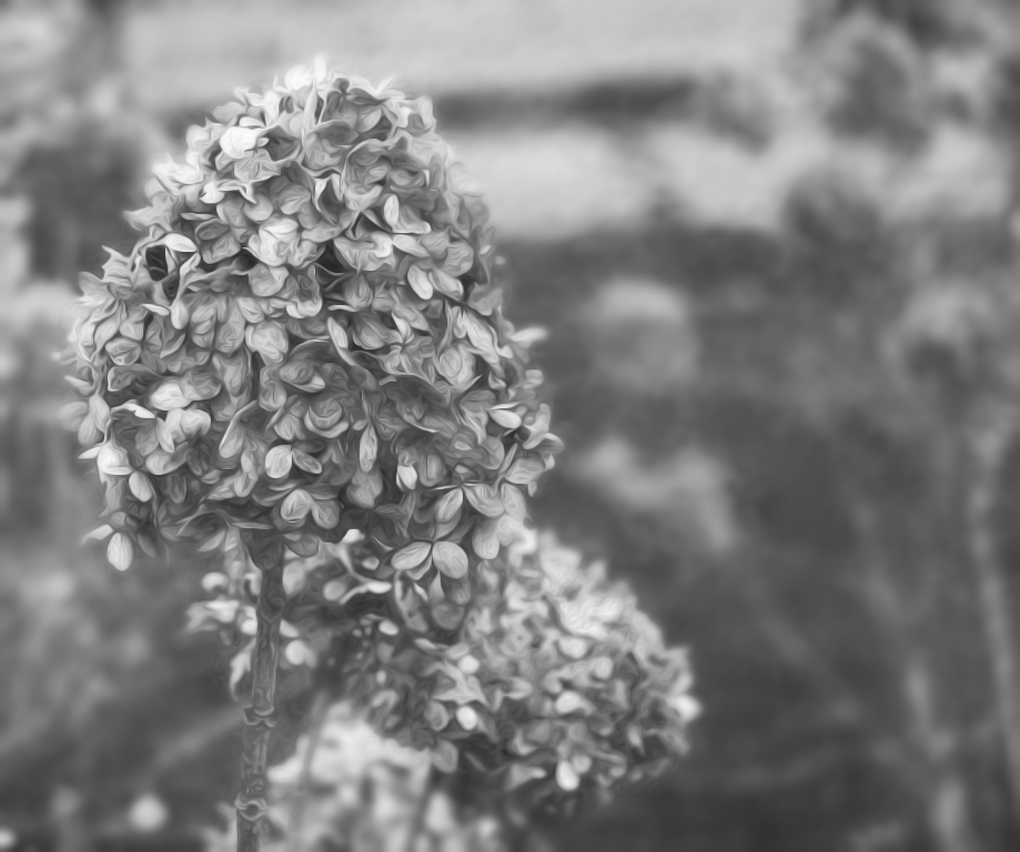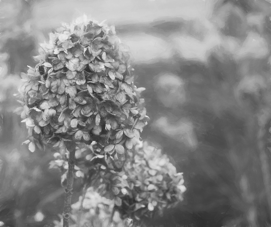 In my sample, I simply lightened and brightened the photo in Topaz Studio 2. I added a bloom filter to brighten midtones, and an Impression filter to distort the background. I applied a rock granite texture to just the background to smooth out the dried flowers in the background so the bare stems weren't so noticeable.