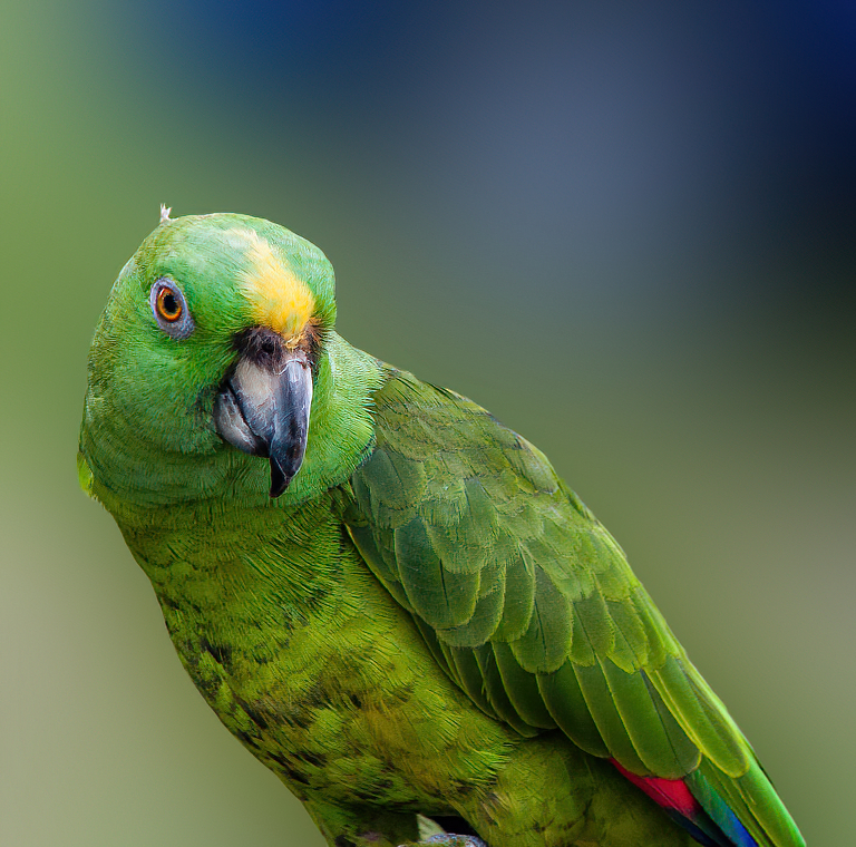 I have to agree this is a beautiful parrot. I think you tried as best you could to simplify your background. But, all is not lost; there is a way to fix the distraction in the background from the car's wheel.