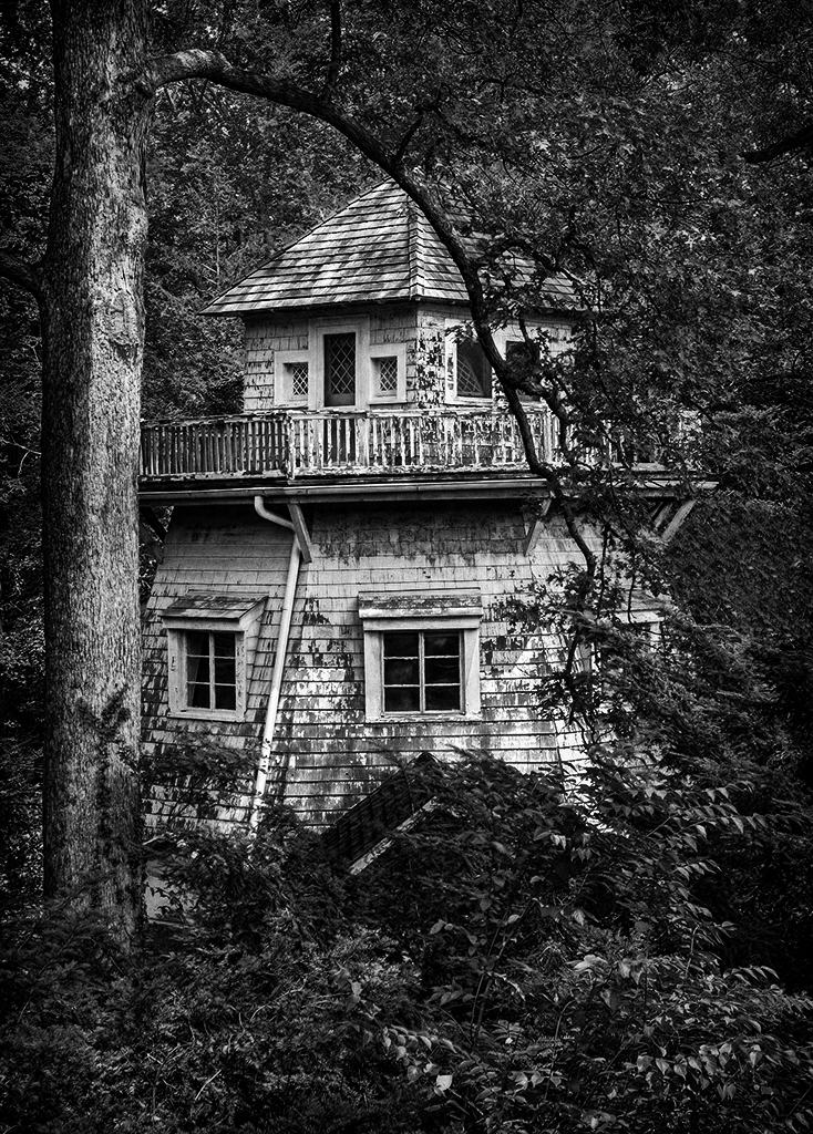 I like how you captured the building. It is tucked back in the trees in a thickly wooded area, perfect for black and white photography.