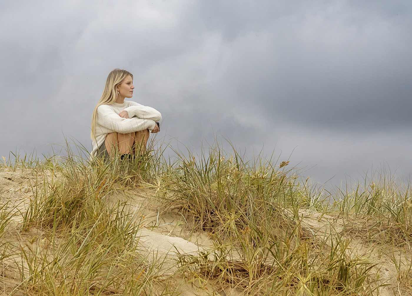 I love this casual portrait of this woman on the beach. The clouds, the pose, and the expression add mood and mystery to the photograph. Your crop aligns nicely with the golden spiral, and the simplicity of the photo is very captivating.