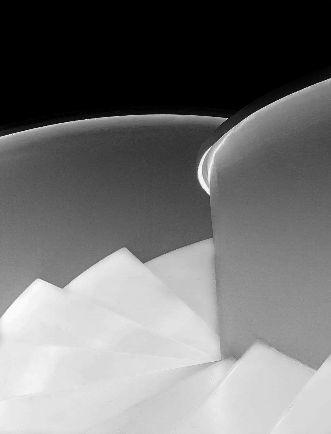 Thanks for submitting a larger photo! I love the simplicity of your image; black and white is the perfect process for this stairway. The under-the-railing lights add a nice glow to the steps. The way you processed your image works for me, just as you have presented.
