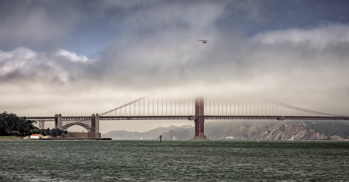 You have nailed the composition Charles but I feel you have over saturated. The plane coming out of the fog creates interest and tells a story. You have captured the Golden Gate in the mist which I imagine is rare. I have taken some blue out of the sky as the sky on the right is bleeding into the clouds. I desaturated overall and darkened the mist slightly. I also applied a slight vignette. I reddened up the pylon. Not a criticism and hope it makes sense. Maybe I have made your image a little too flat and would be better as a monochrome. Cheers Glenn |
