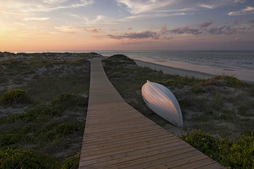 What a great time of day Lamar? The light is magnificent. Composition and colours are wonderful. The leading lines of the boardwalk and seashore toward the coloured sky are well thought out. The boat and the reflected light on the hull add interest. A very peaceful scene. I would have cropped a little tighter. While not losing the essence of the scene the boardwalk creates more of a foreground and protrudes from the right corner more. Personal Choice. Well handled and not over saturated. Cheers Glenn |