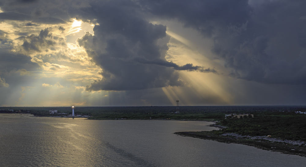 Hi Lamar. For a spur of the moment shot you have done very well. These rays are hard to capture at times particularly getting the light right. To my eye the composition is fine but I would have lightened the shadows.I like the texture in the clouds and you have placed the lighthouse perfectly. For me the image is all about the sky and you have made it the main subject. I have attached an image with the shadows brightened. What do you think? Perhaps converting to a monochrome might be worth a try. Cheers Glenn |