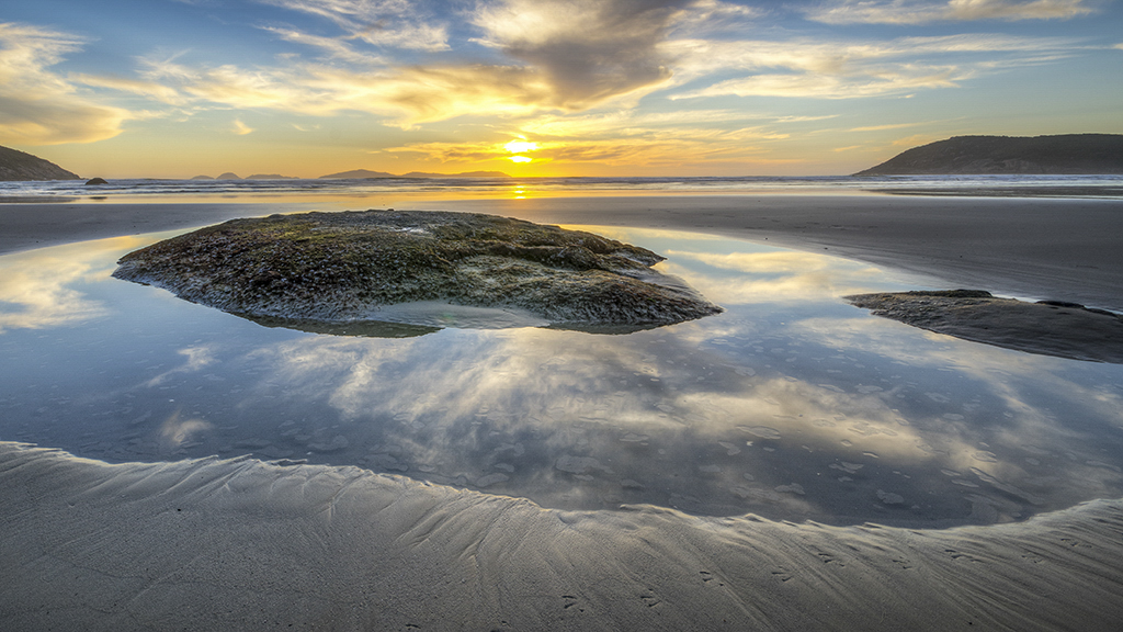 Hi All. Thank you for your wonderful suggestions. I have cropped to a 16:9 ratio which placed the rock and sun a little off centre. It also brings out the reflection. Always open to new suggestions. Thanks Glenn. Happy Easter All. |