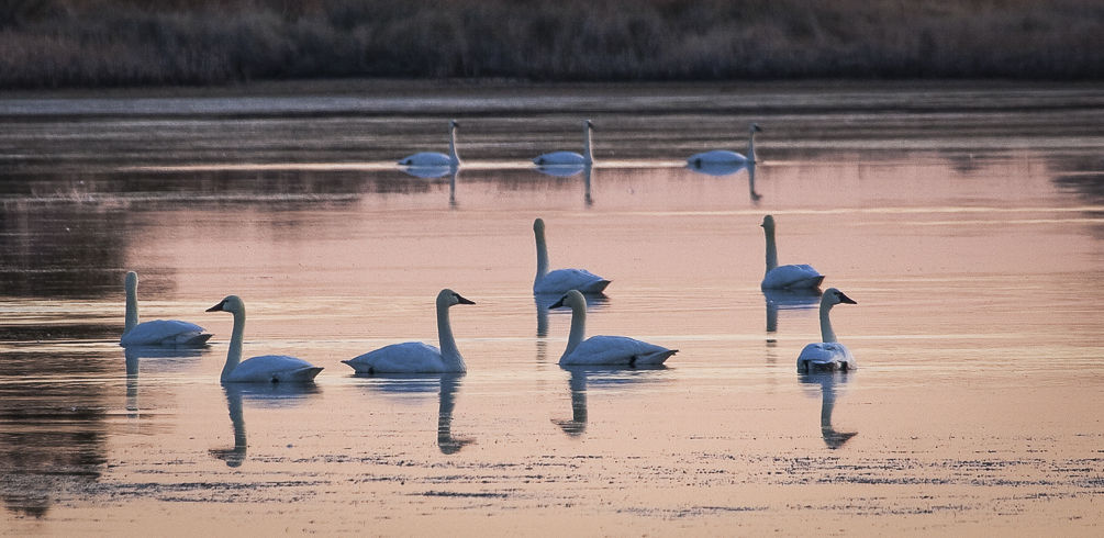 Hi Lamar. You have captured a very peaceful scene.Love the muted colours. You have captured a pleasing depth of field with the foreground swans sharp and the background swans much softer.Did you consider a pano crop as I feel the background landscape does little for the story? As the swans are the feature I would have made them more to the forefront. Only a suggestion. Cheers Glenn. |