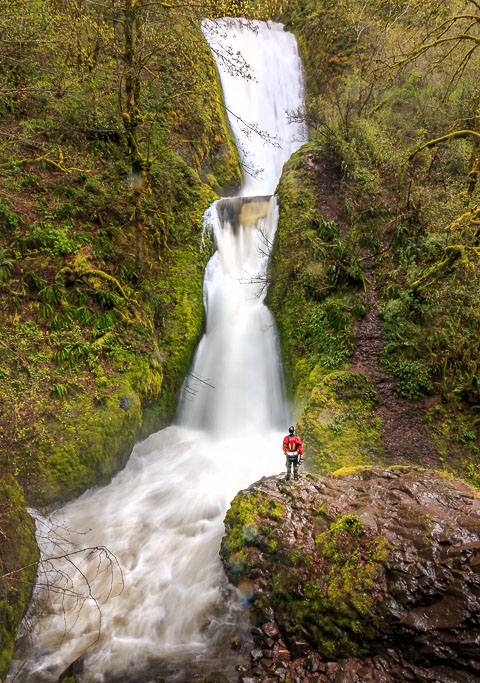 It is definitely a great shot. I like the long exposure but still a visible human to make photo alive, also his red jacket. Don't if it looks different with portrait format and highlight the waterfall. |