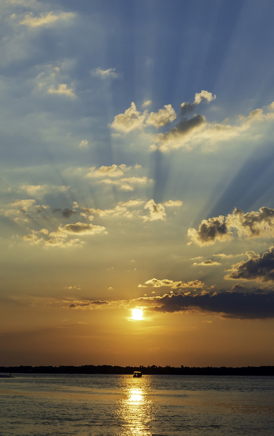 It's a beautiful capture of sunset. I love the color and the ray of light. The reflection adds the beauty. The only thing I like to change is to put the sun in the middle unless something on the right to balance the composition. |