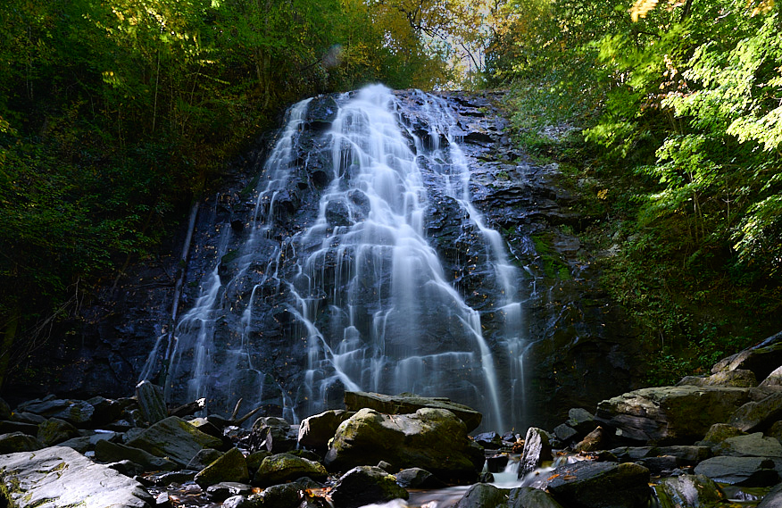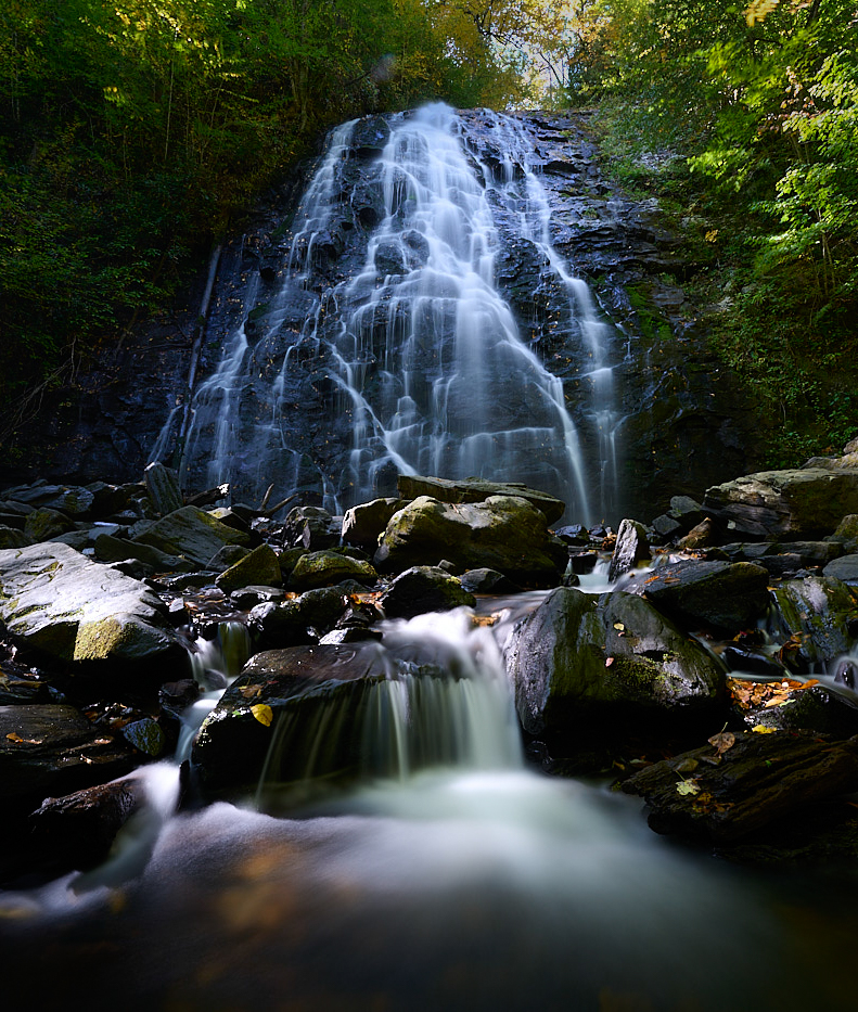 It is a good capture of fall setting. I like the process you use to take the photo. The original image has better lighting. I tried two crops of your original to focus on the main scene. |