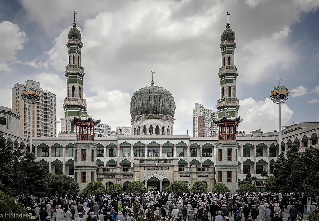 I like this shot it seems to capture the atmosphere of the scene with all the people in the foreground. Although Stephen's suggestions make some improvement, for me they are not as important as cropping out the external building on the left which i find very distracting. I realise that this upsets the central position of the mosque but even so