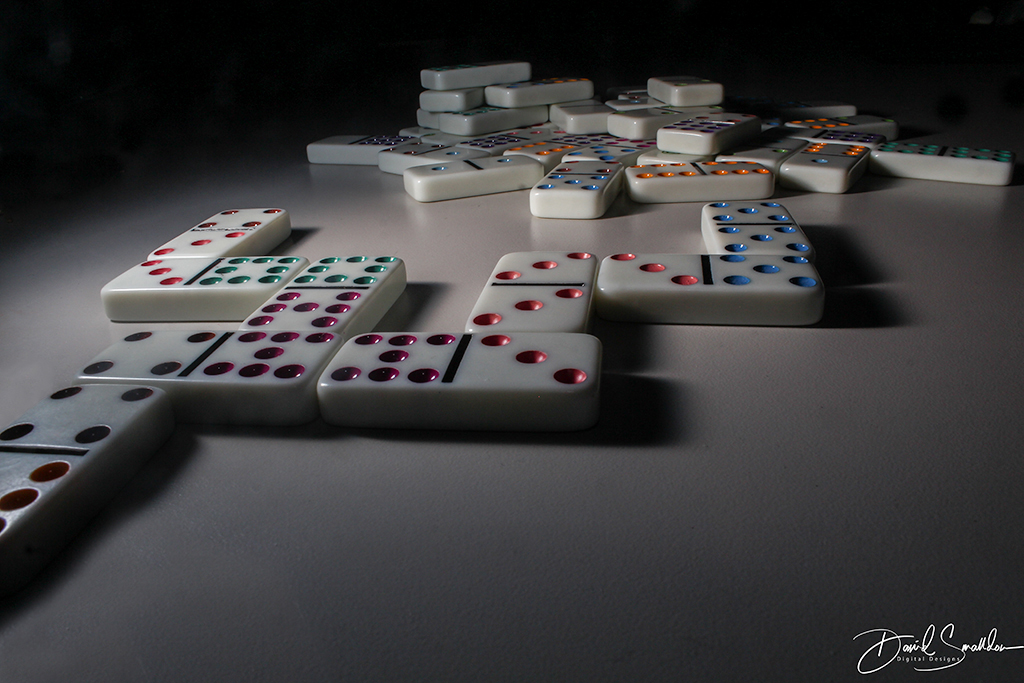 Thanks Isaac :) As for the changes in the revised photo, it shows you how OCD I can be with my photos sometimes. The colors on the dominoes are a bit more saturated and glow a little more. Also I "clone stamped" out the "extra" domino in the lower left corner that you could see the edge of in favor of just having a sole domino leading into the photo and I took out a few really small details you could see in the dark black background if you enlarged the photo. |