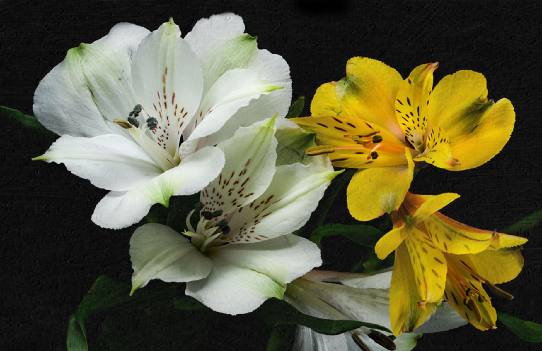 I think this is really nice as far as the flowers but they seem so bright and the bottom flowers and leaves distract me. There is something missing on top -- like space above the flowers.