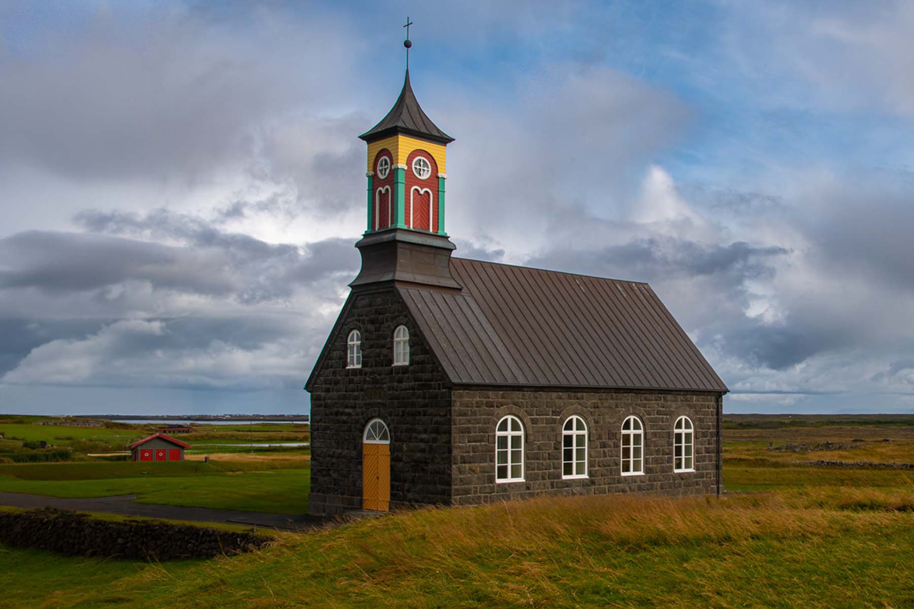 It's a lovely church; I love the steeple, doors, windows, the grasses. How lovely. I wish I could afford a trip to Iceland !
