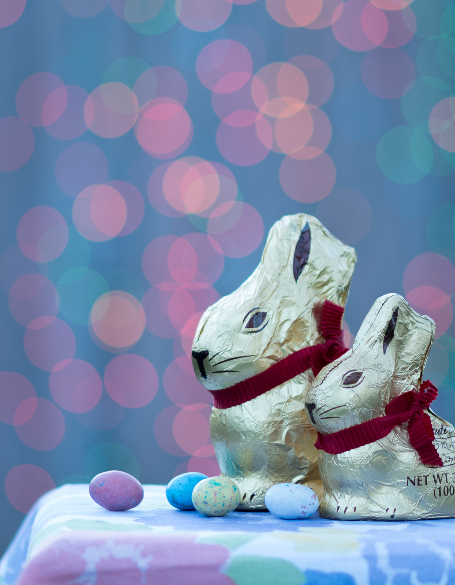 Hi Everyone, thanks for the comments! I did get a chance to try this again, outside this time. Outside was more challenging due to the lighting (and because it was warm enough to make the chocolate a bit soft!)--but gave me room for more distance between my camera and the subject, so I could get the bunnies in better focus. I'm fine with the bokeh being slightly blurred... This was mostly to experiment with and I learned quite a bit doing it :-) |
