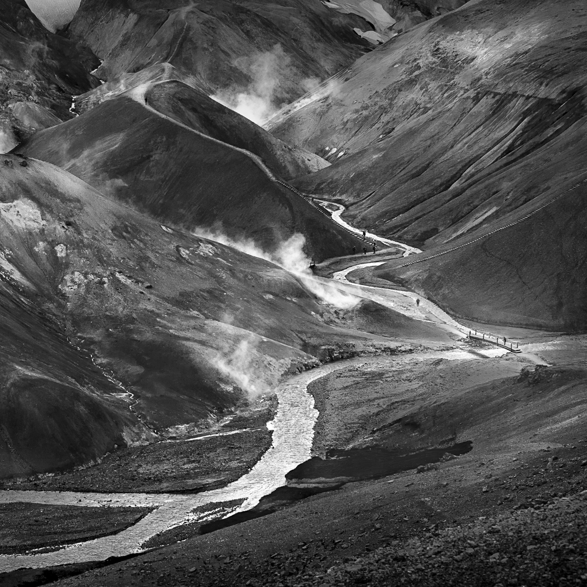 I like the choice of panorama for the presentation. I might drop a gradient from the top and darken it a little to allow the eyes to focus even more on the mesas. |