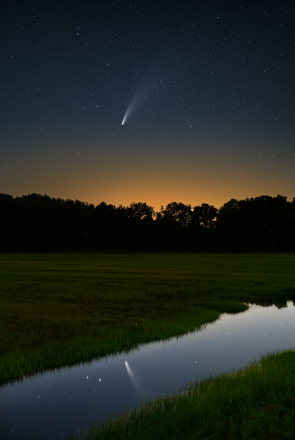 Really good capture. I like how the diagonal cloud sort of mirrors the effect of the comet. |