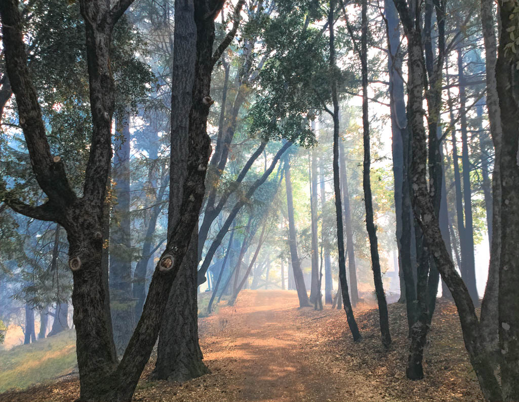 Bunny - the smoke in your image looks like fog so I think it's a real plus and the autumnal colors are wonderful. I'm ready to walk that pathway.