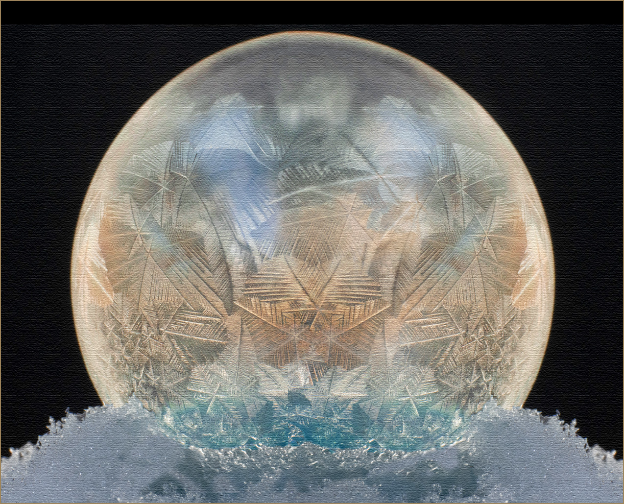 Denise , this is very cool! I love all the frozen details in the bubble and think your lighting has been well done to capture it. Although the B&W version is nice, I find the grittiness of your processing a bit harsh. Also I feel the white at the border is a bit too thick, since it is the brightest part of the image and pulls my eye.