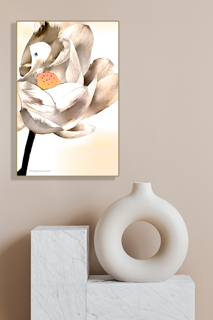 In this photo, it's not clear to me what your objective was. I assume it was "Arty"; therefore it seems to me that once you move away from "reality", it would be nice to clone away the fly, since to me it seems to be a distraction. I think the pale yellows from the texture layer, which bring out the yellow in the flower center are a big plus. For fun,I've added your photo to a wall… |