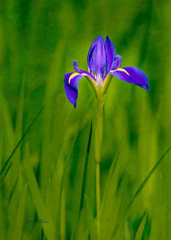 A couple of thoughts - the one dark reed on the left that meets the iris is distracting (I copied and moved it) and the IMHO the greens could pop just a little more, perhaps with an emerald color. To make the image "artier", I tried adding a texture to the grasses. Might be a plus…