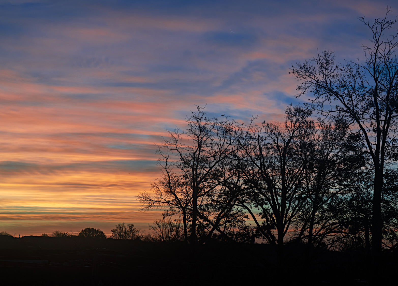This image is nice. I like the silhouetted trees against the early sunrise, and I think the Topaz adjustment you made to the trees works well.