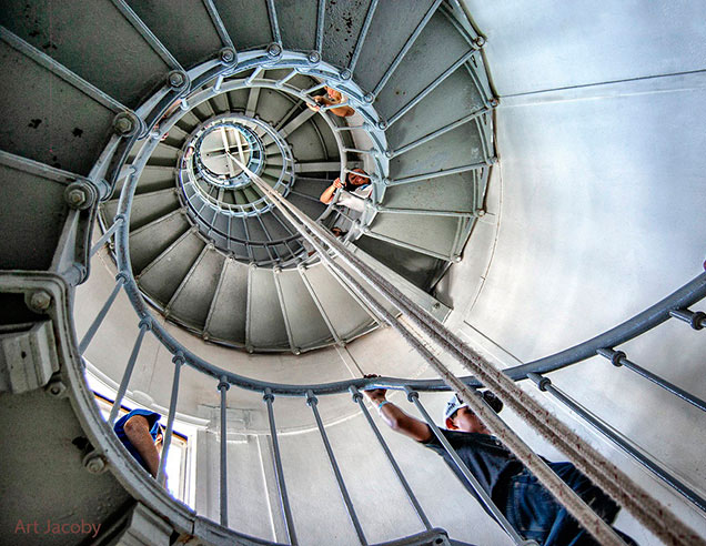 I agree that the horizon could be straightened a little. I myself, would NOT crop it at all as I feel that the yellow and black striped stands/markers are part of the story. If you could have taken the shot so that the camera was not an extension of the man on the left it would be an improvement ... in m mind. I like the leading lines of the railing and the deck pointing right at the people sitting. |