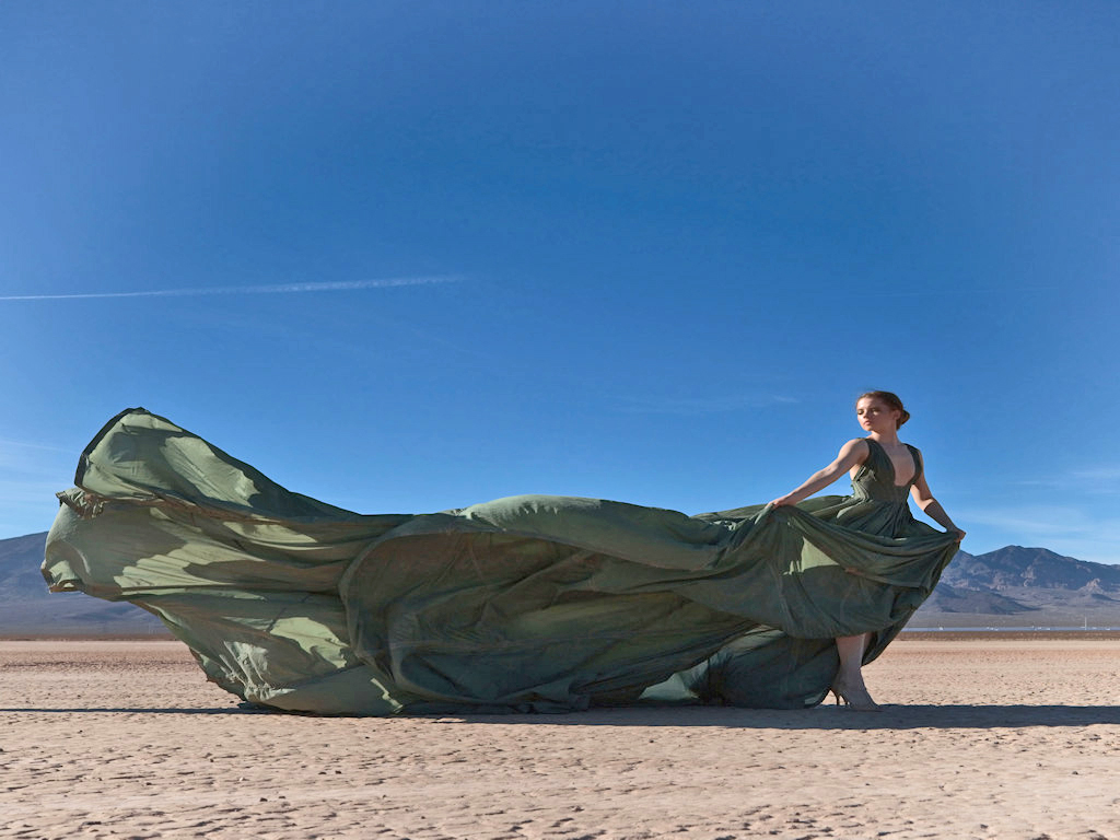 Donna, I like how the dress billows in the breeze. The position of sun on the face is what you wanted. Her closed eyes give mystique and arms are bold to hold the parachute dress against the wind. The contrast of sun is nearly a white blowout on the forehead and dark shadow across the cheek are bold. I lightened shadows, darkened highlights and bumped up the midtone contrast in Photoshop Elements. This brings out lots of detail in the parachute dress too. Let me know what you think. |