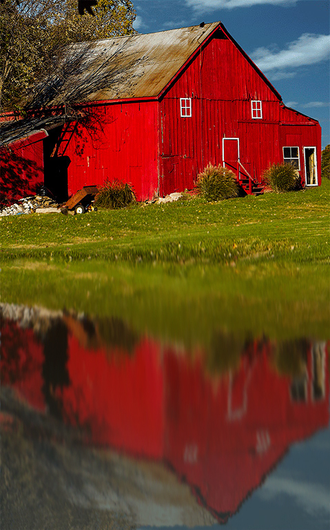 Barbara, I am impressed with your idea of adding a reflection to this bold red barn. I notice a texture of your distort>ocean ripple makes it look like a carpet.