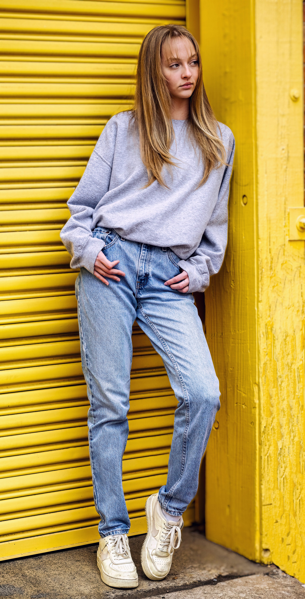 Richard, You caught the resting-face-expression of so many young women and young men. I used the clone tool to take out the orange crate. I think it adds some room for her knee and lets her lean back and relax. Jim |