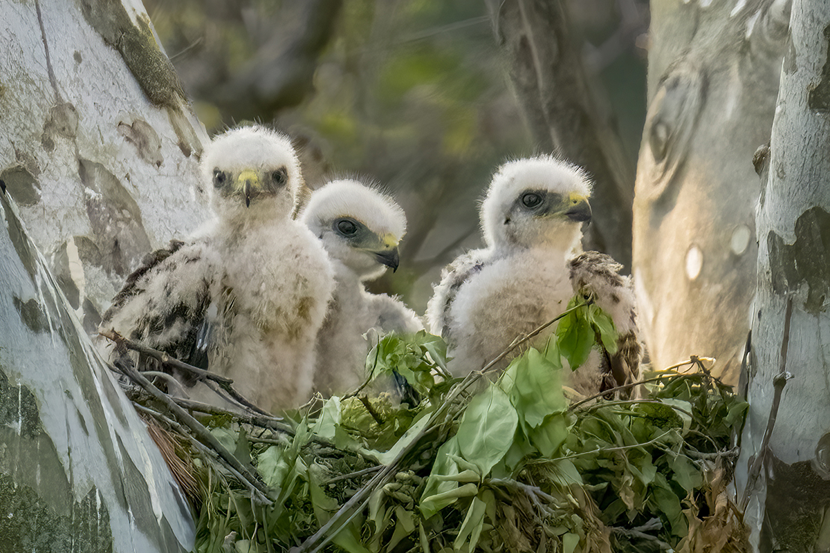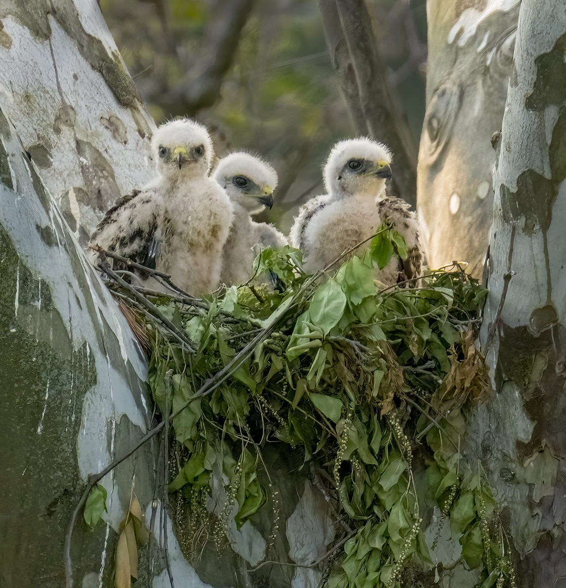 Sophia, yes, the adult female enlarges the nest with green leaved vines as the hawk chicks grow. Within two days, the green leaves are brown and shriveled. As for your suggestions on the photo, I agree that the background needs to be darker. I desaturated the background and used the burn highlights tool to make the background recede. Let me know what you think. Jim |