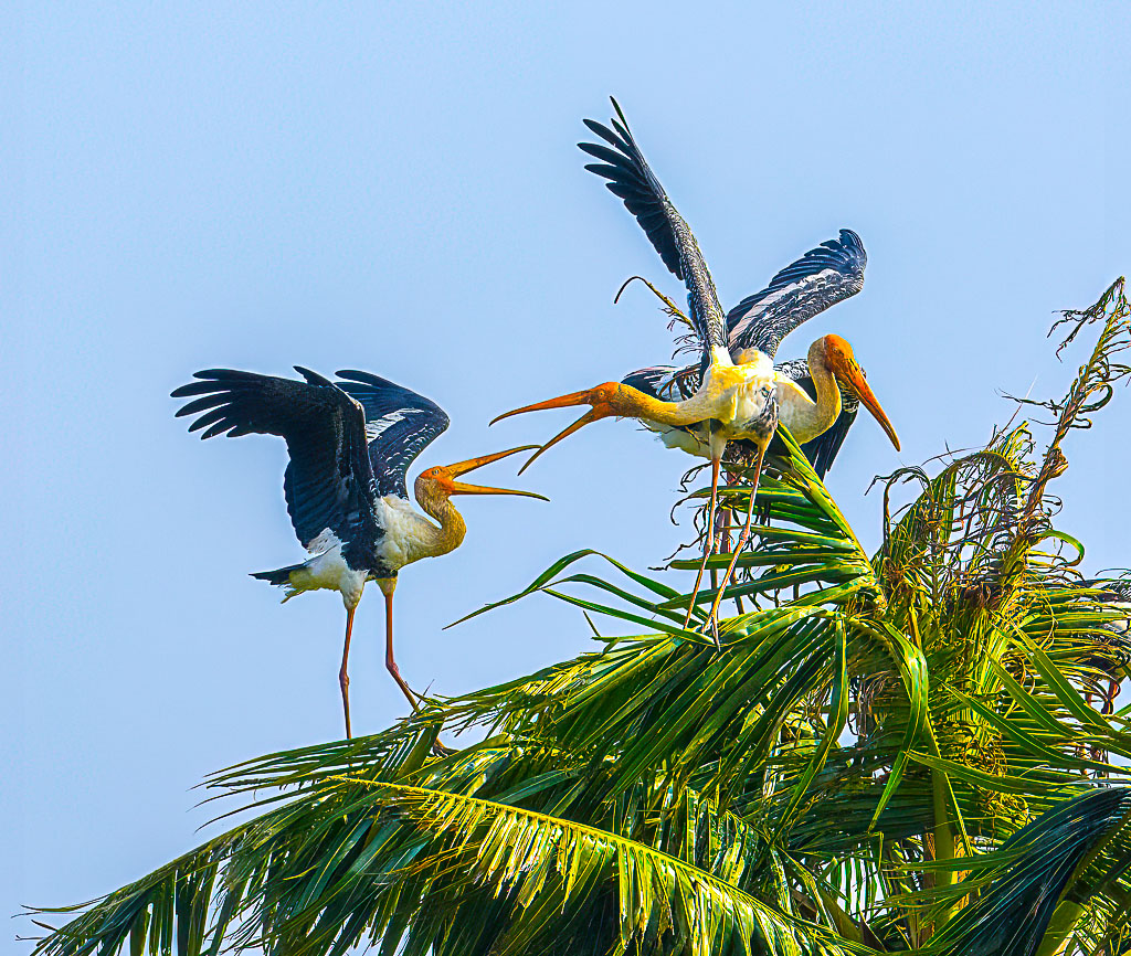 Sarita, your choice of one stork bothering the pair of storks is a good action shot. I made some adjustments in Photoshop Camera Raw filter - I lowered the highlights, adjusted the temperature to make the sky blue, used dehaze and increased the saturation. Let me know what you think. Jim |
