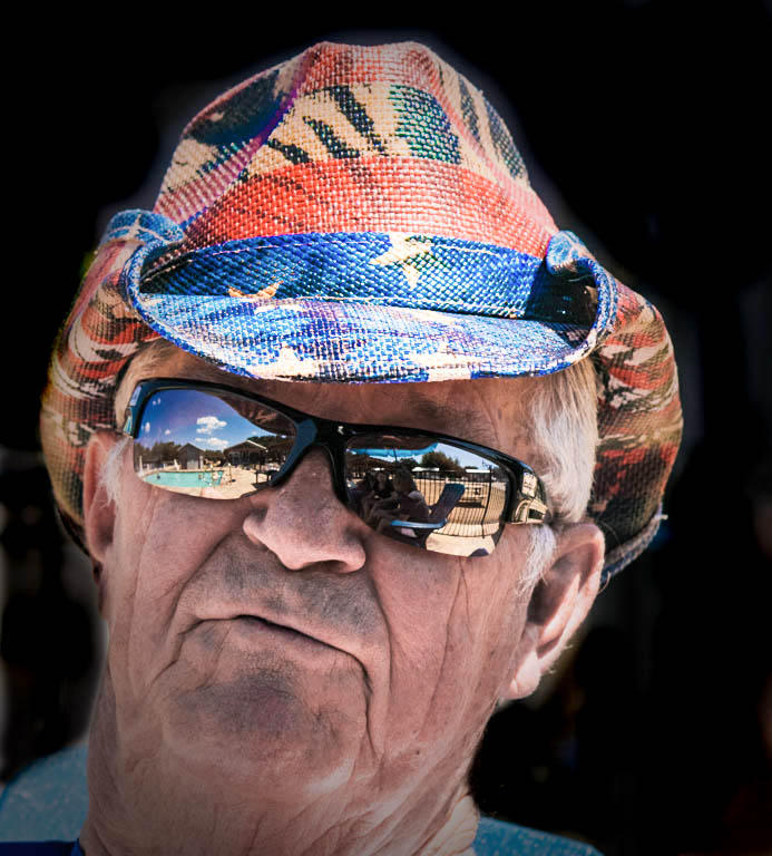 Thank you for all the comments. I didn't want to crop the picture as I really like the hat. I did darken the background and increased exposure on his face. Let me know if you like the black background or if you prefer the original. |