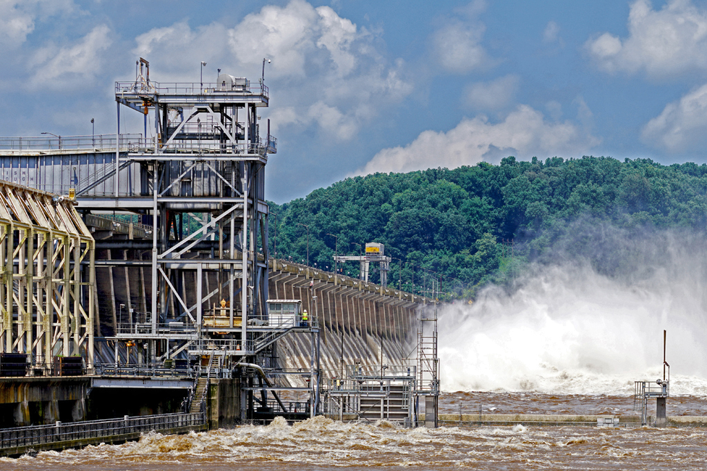 I agree that the engineer is an essential element to this image creating a sense of scale. You might want to consider adjusting the hue of the blue so that the sky doesn't have a cyan tone. I used the detail enhancer in NIK filters to add some definition to the water spray and the clouds.