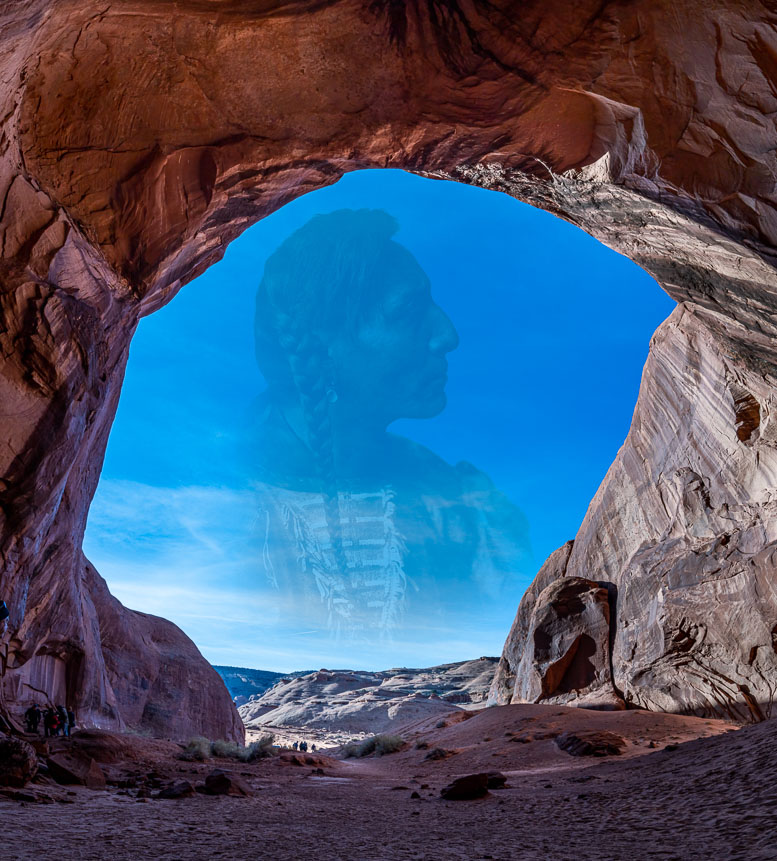 I love the concept that you are trying to create here. Because your intent was to portray the Navajo Spirit, you might want to consider cropping the hole out or the upper portion of the image. It draws the eye away from the spirit image. |